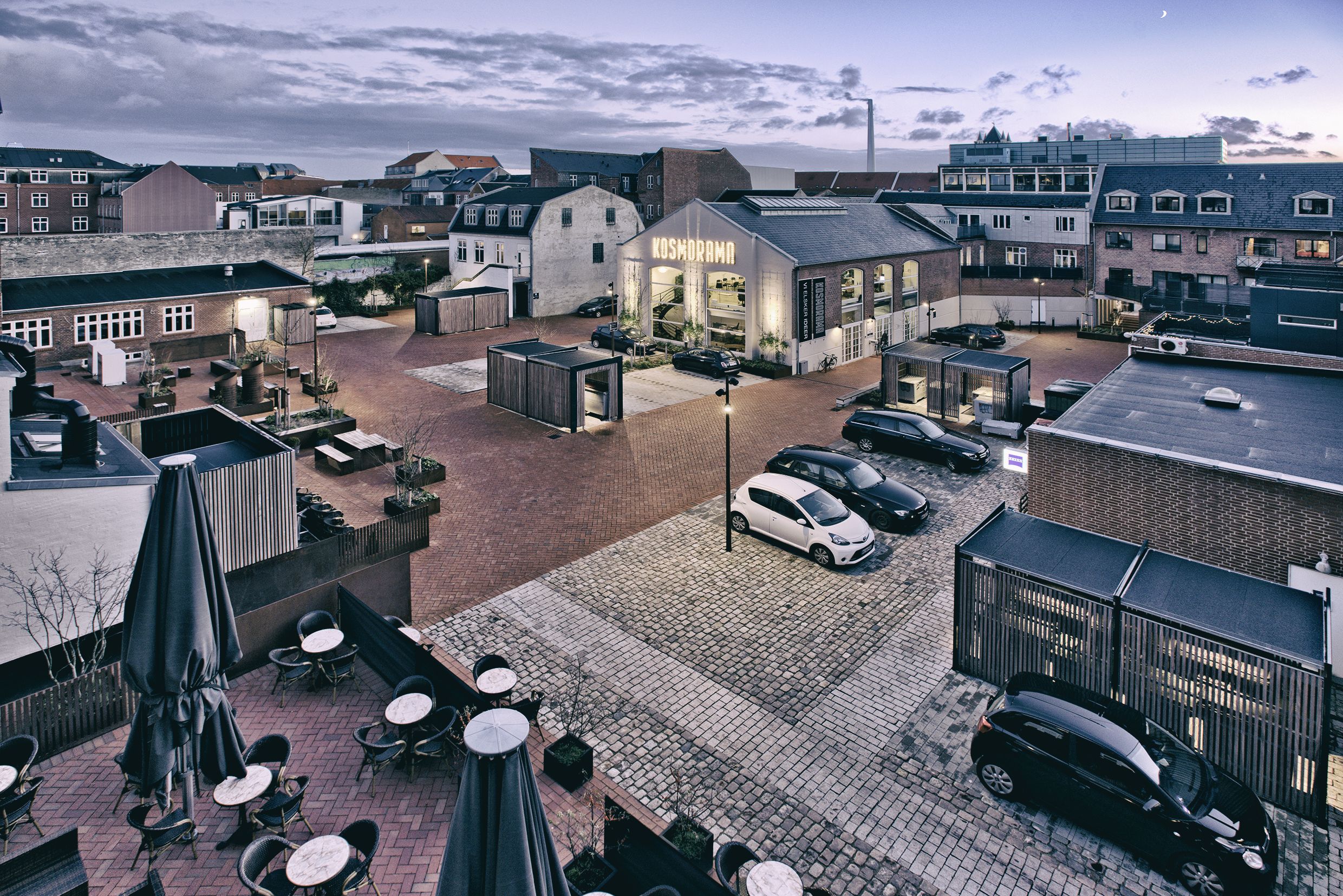 Mellem Kongensgade, Skolegade og Kirkegade lå engang forskellige biografer – senest Kosmorama, der lukkede i 1986. Mellem karréerne lå et forsømt gårdmiljø. Netop karrébyggeriet er typisk for Esbjergs centrum, og derfor var det vigtigt at bevare både bygningerne og baggården.